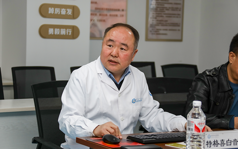 附属医院医学研究与创新中心实验室负责人特格喜白音作实验室工作汇报。与会人员围绕医学创新与科研转化进行了探讨交流。