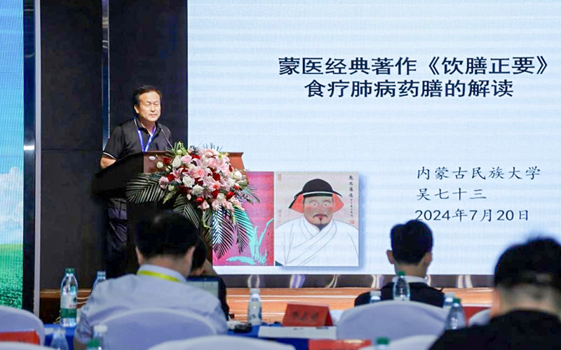 内蒙古民族大学吴七十三教授作《蒙医经典著作<饮膳正要>食疗肺病药膳的解读》报告
