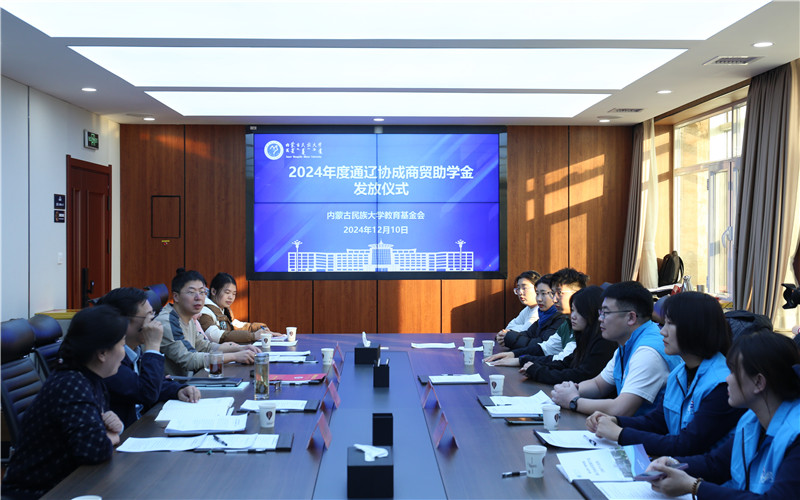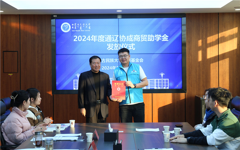 12月10日下午,2024年度“通辽协成商贸助学金”发放仪式在我校霍林河校区励志楼300会议室举行。校党委委员、副校长王百涛,教育基金会理事长白跃华、通辽市协成商贸有限责任公司总经理霍光出席仪式。通辽市协成商贸有限责任公司相关骨干成员及受资助学生参加仪式。校友工作办公室(基金工作办公室)主任白金英主持仪式。