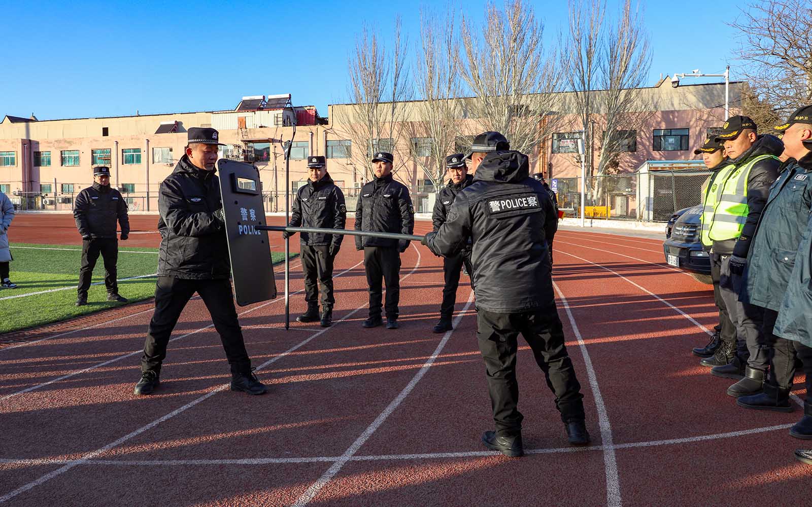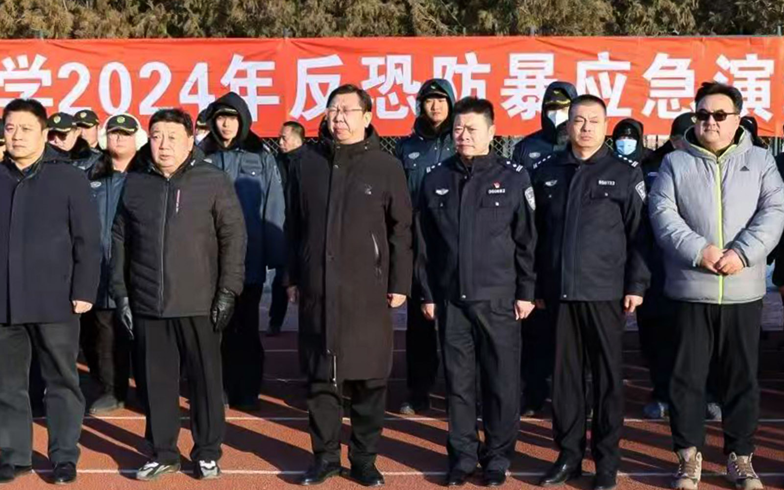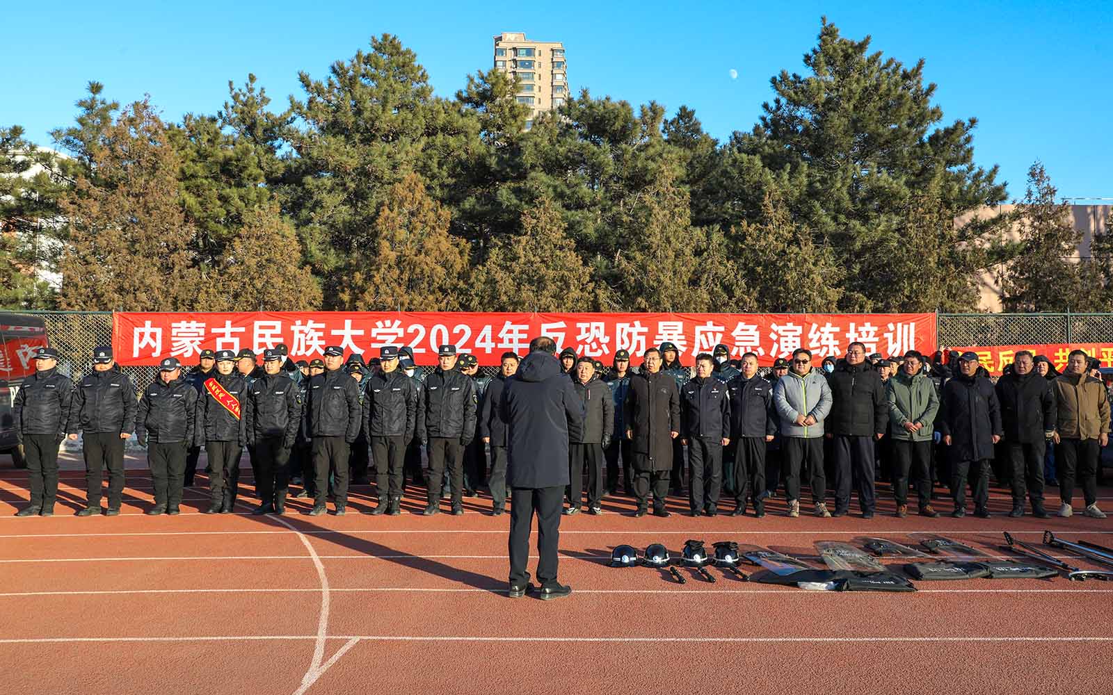为深入学习贯彻党的二十届三中全会精神,进一步健全校警联动机制,普及反恐怖法律知识和反恐怖应急技能,12月11日下午,学校联合通辽市公安局科尔沁分局反恐怖和特巡警大队在霍林河校区操场开展2024年反恐防暴应急演练培训。校党委委员、副校长王百涛出席活动。通辽市公安局科尔沁分局反恐怖和特巡警大队大队长王涛,通辽市公安局科尔沁分局永清第二派出所所长董权,我校安全管理处相关工作人员,内蒙古龙护卫保安公司全体人员,各楼宇值班人员参加活动。安全管理处处长赵虎主持应急演练培训。