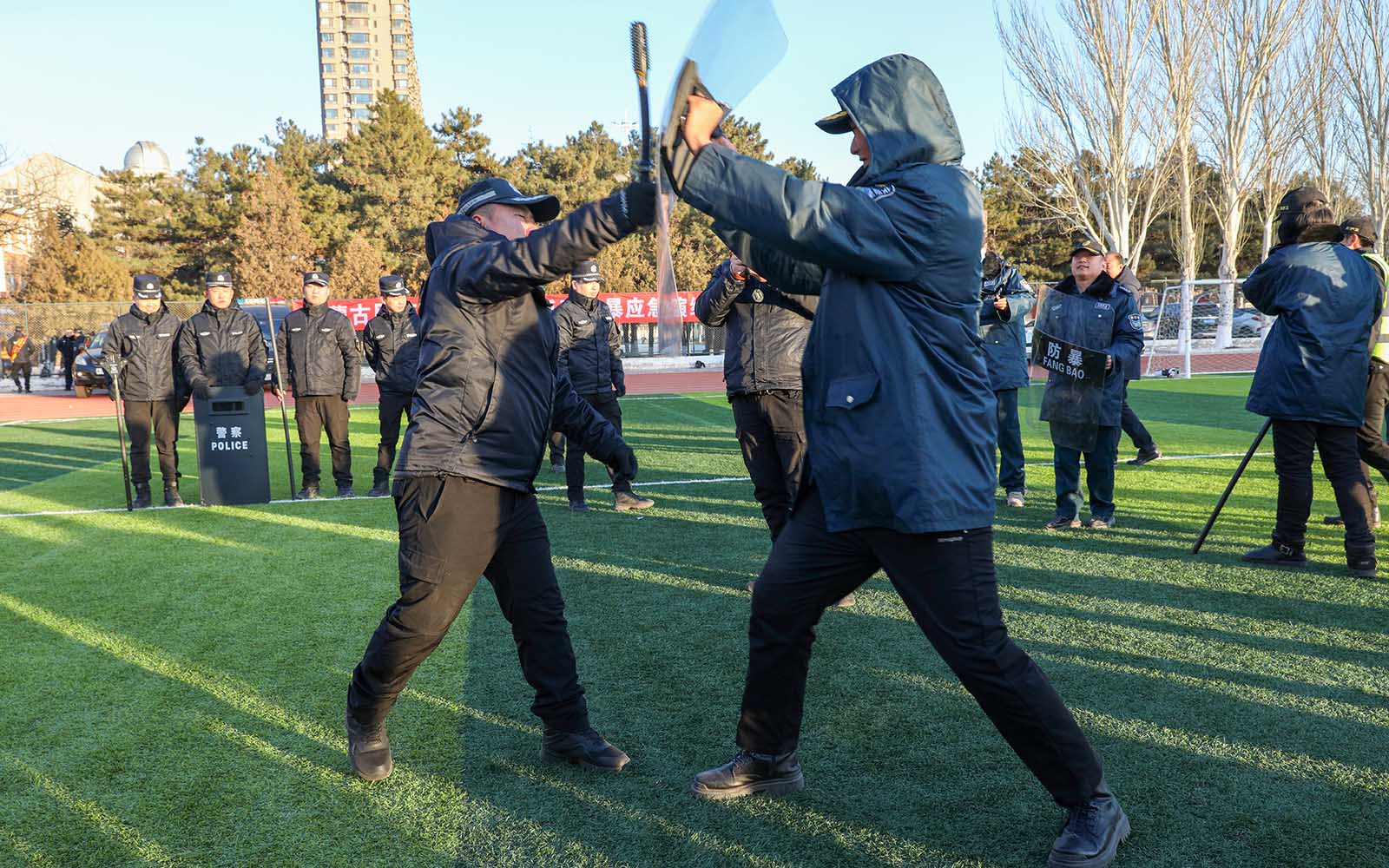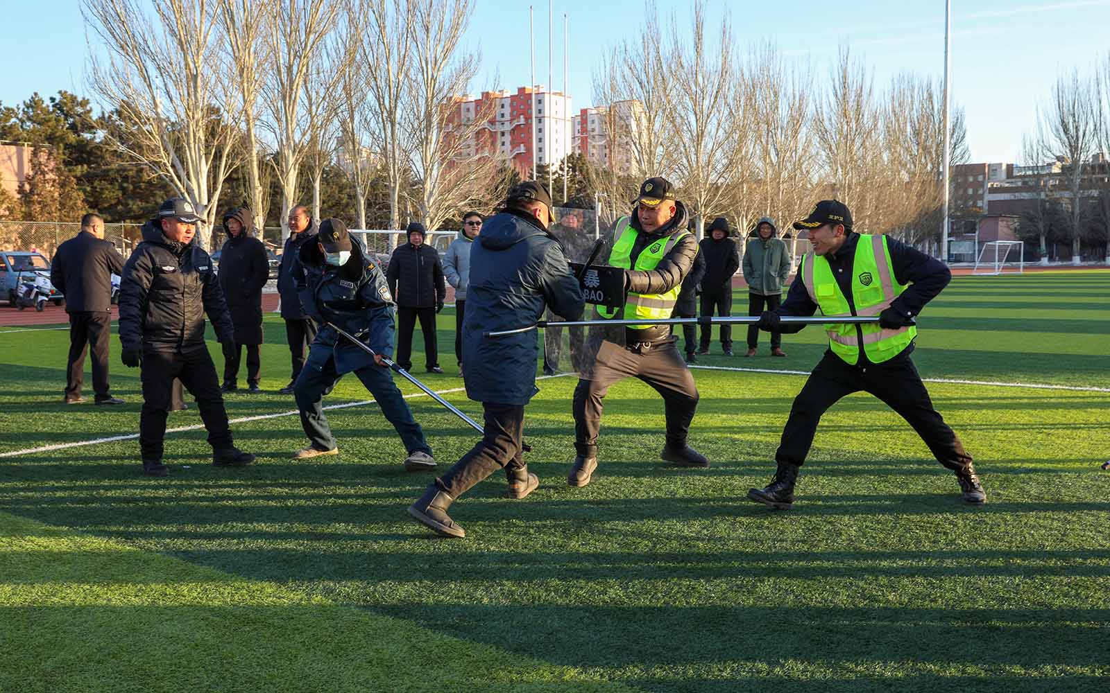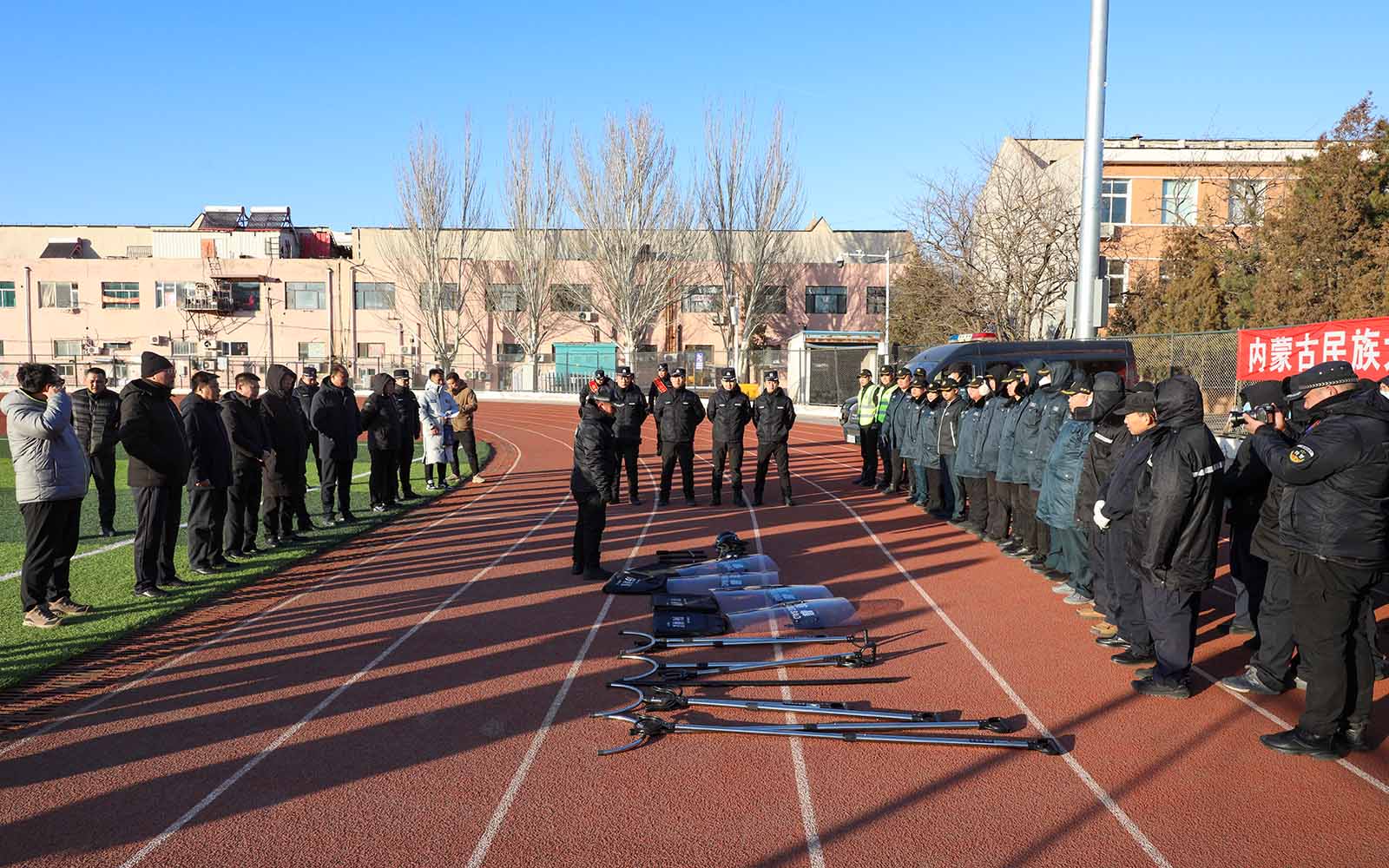 为深入学习贯彻党的二十届三中全会精神,进一步健全校警联动机制,普及反恐怖法律知识和反恐怖应急技能,12月11日下午,学校联合通辽市公安局科尔沁分局反恐怖和特巡警大队在霍林河校区操场开展2024年反恐防暴应急演练培训。校党委委员、副校长王百涛出席活动。通辽市公安局科尔沁分局反恐怖和特巡警大队大队长王涛,通辽市公安局科尔沁分局永清第二派出所所长董权,我校安全管理处相关工作人员,内蒙古龙护卫保安公司全体人员,各楼宇值班人员参加活动。安全管理处处长赵虎主持应急演练培训。