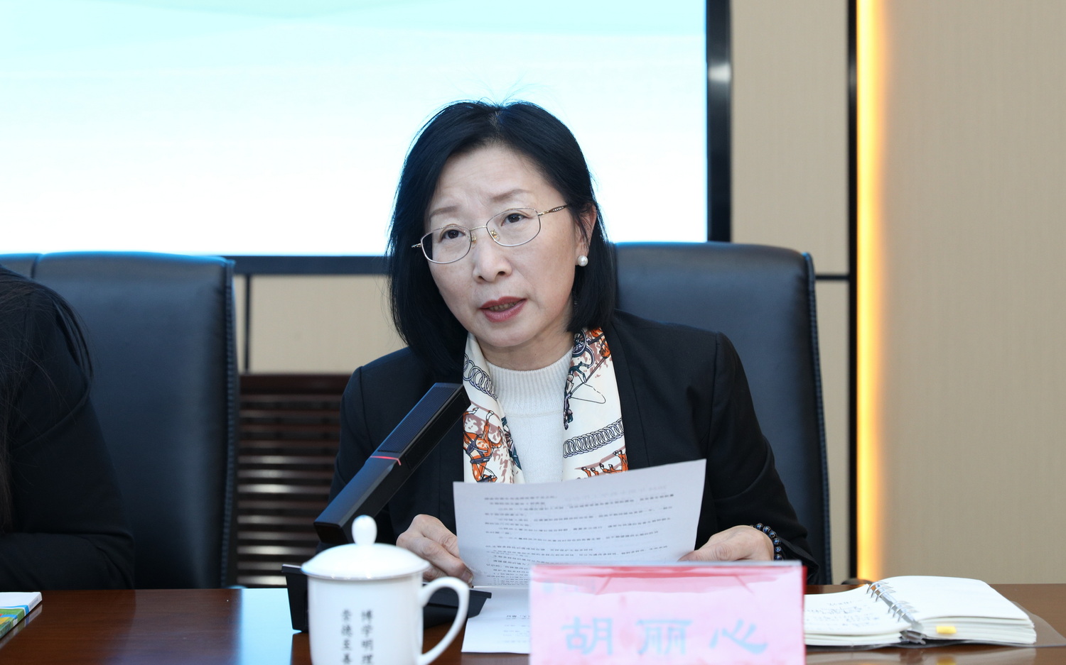 图书馆馆长胡丽心布置工作