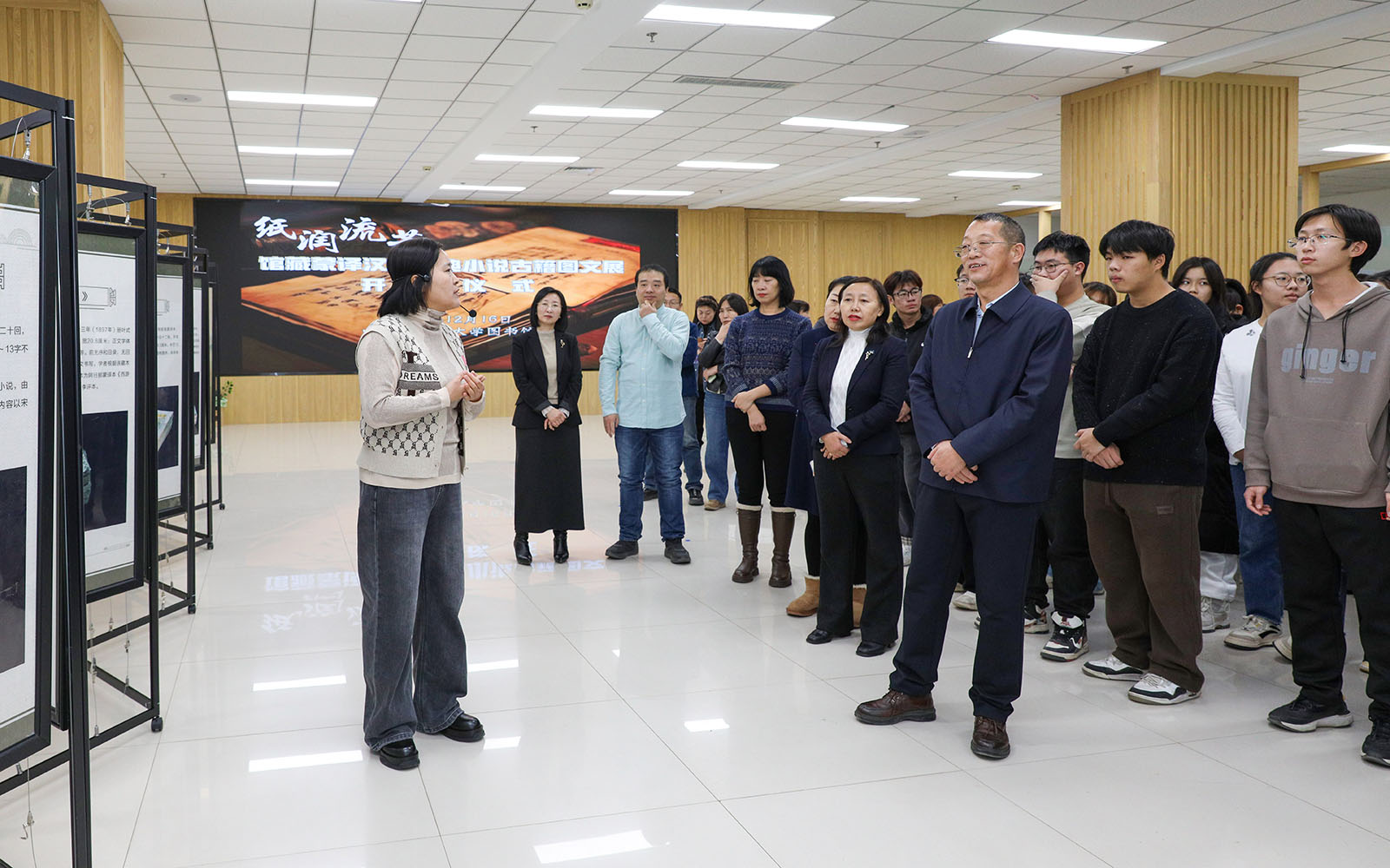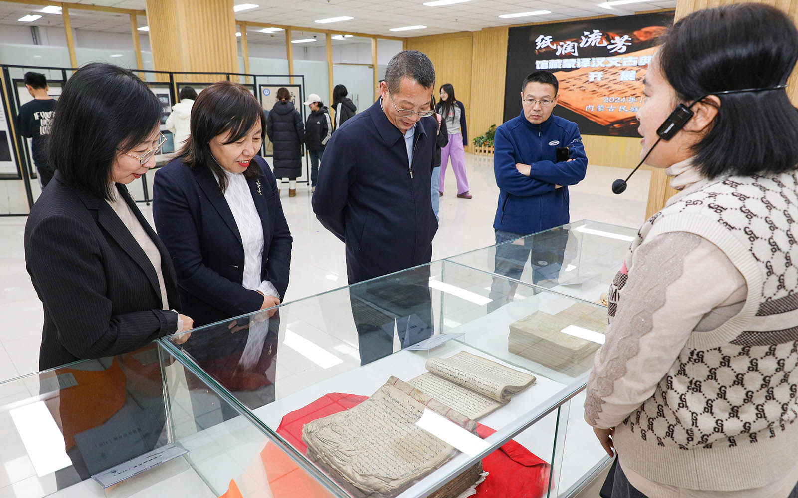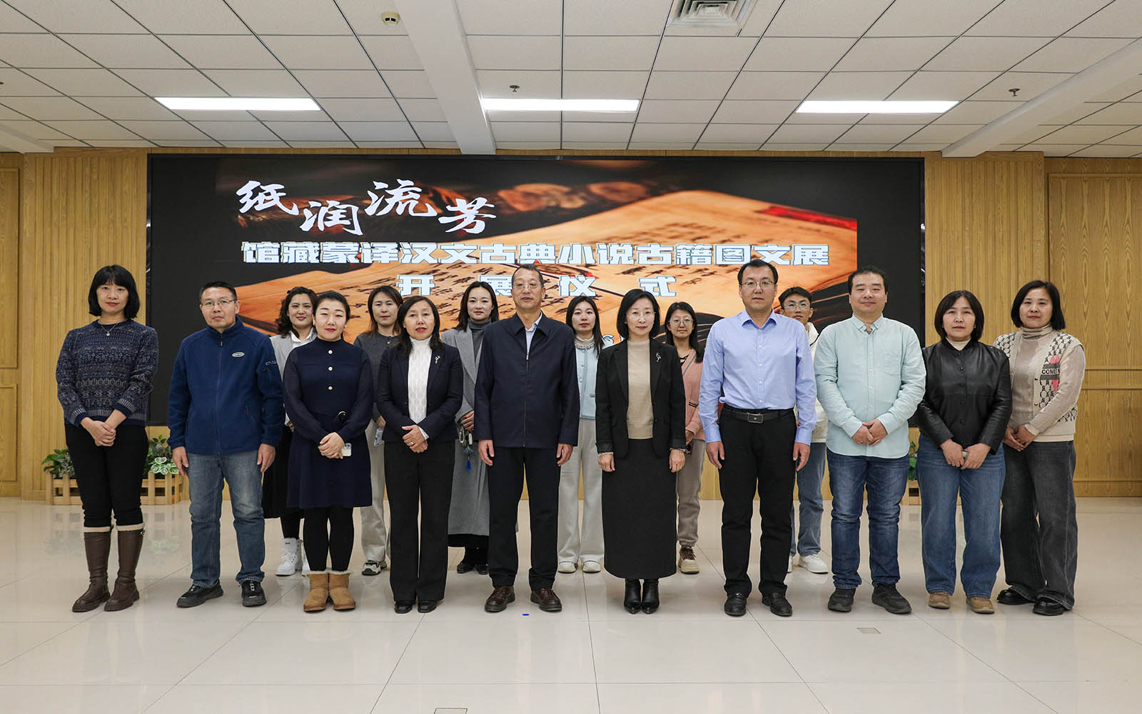12月16日下午,我校“纸润流芳”馆藏蒙译汉文古典小说古籍图文展在图书馆一楼多功能厅开展。校党委委员、副校长杨恒山出席开展仪式。社会科学处、蒙古学学院相关负责人,文学与新闻传播学院教师代表,图书馆(博物馆)全体工作人员以及学生百余人参加仪式。图书馆(博物馆)馆长胡丽心主持开展仪式。