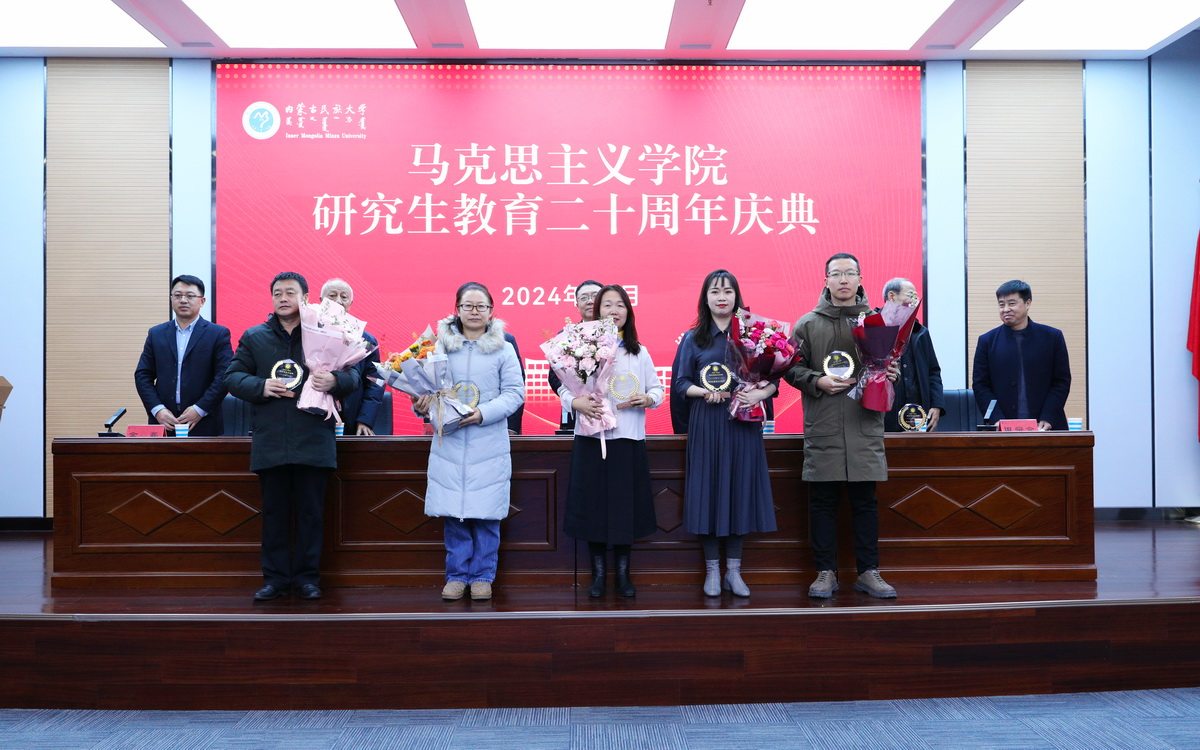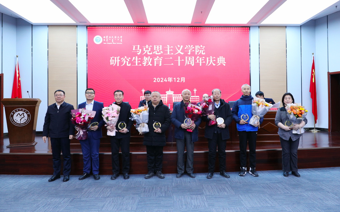 仪式上,马克思主义学院院长金鑫介绍了学院研究生教育的开展情况;学院研究生教育开创者之一刘济生教授,硕士研究生导师代表刘德华教授,优秀毕业生代表格日勒图教授、代宏丽博士分别发言。校领导为研究生导师代表颁发了纪念奖章。