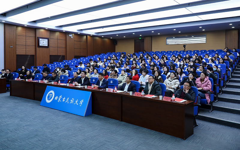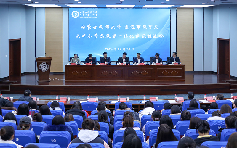 12月20日上午,由内蒙古民族大学、通辽市教育局联合举办的大中小学思政课一体化共同体建设推进会在我校图书馆大报告厅召开。校党委副书记王烨辉,校党委委员、副校长裴志利,通辽市教育局党组成员、副局长王金山出席会议。我校教务处、团委、马克思主义学院,通辽市教育研究室、通辽市科尔沁区教体局相关负责人以及通辽职业学院、通辽实验中学等市内十余家大中小学校的领导、师生代表共计200余人参加会议。马克思主义学院副院长舒心心主持会议。