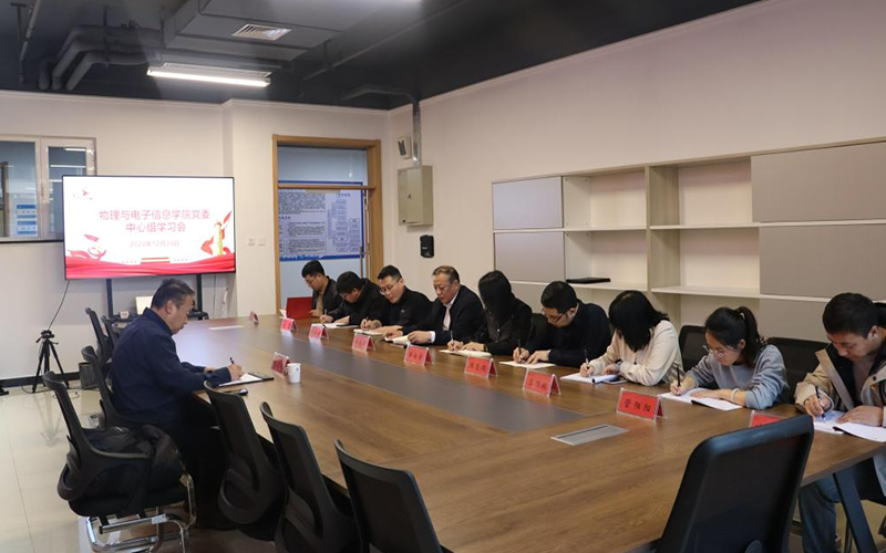 12月24日下午,校党委委员、副校长裴志利深入物理与电子信息学院巡听旁听学院党委理论学习中心组学习研讨。学院党委理论学习中心组成员、党支部书记、分工会主席参加学习会。学院党委书记李喜军主持学习会。