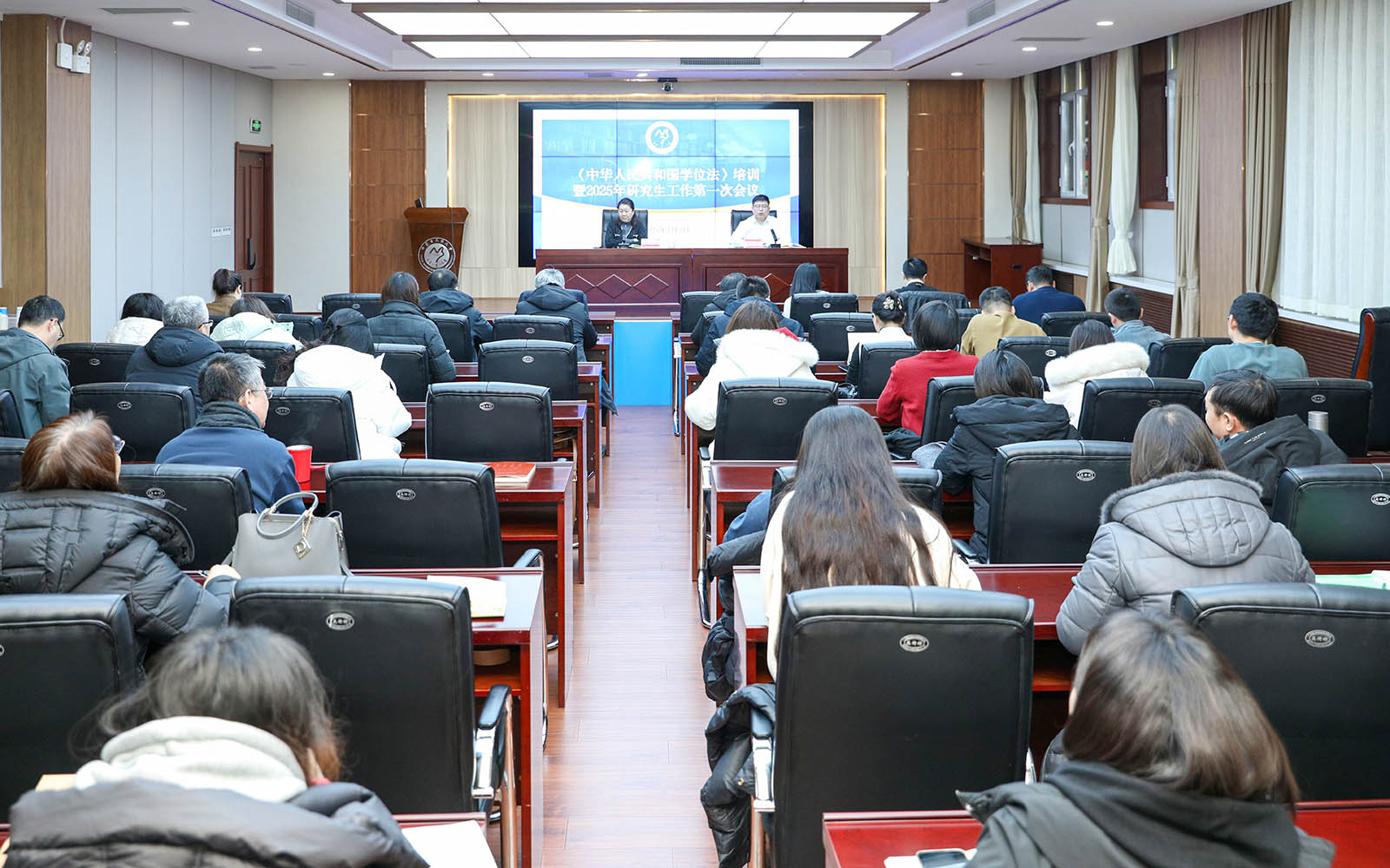 1月3日下午,我校在励志楼111会议室召开《中华人民共和国学位法》培训暨2025年研究生工作第一次会议。副校长红梅出席会议并讲话。各研究生培养单位院长、分管研究生工作领导、研究生管理工作人员参加会议。研究生处(院)处(院)长杨景峰主持会议。