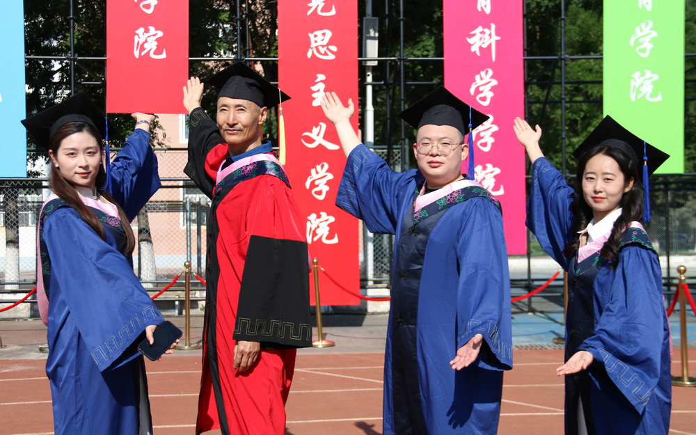 在学位授予仪式上,校学位评定委员会委员共同为全体毕业生扶正流苏,颁发学位证书,并与毕业生合影留念,送上美好祝福。