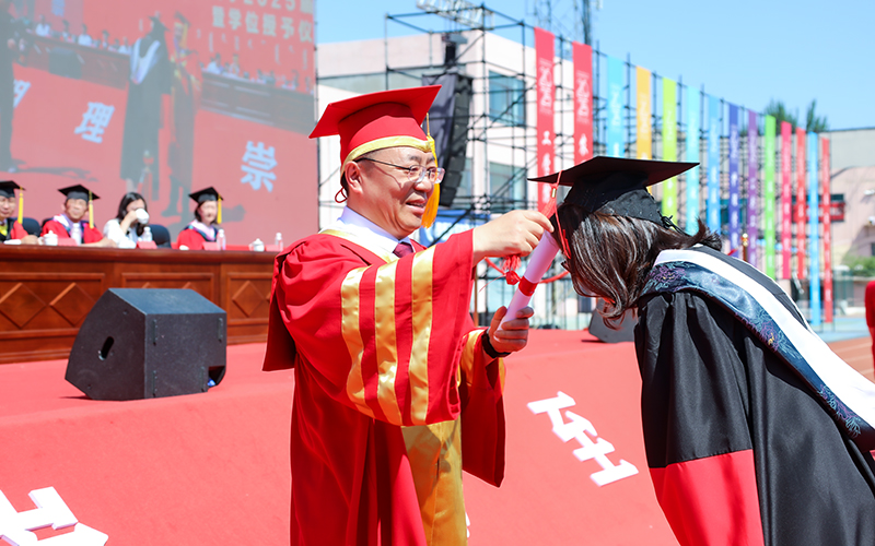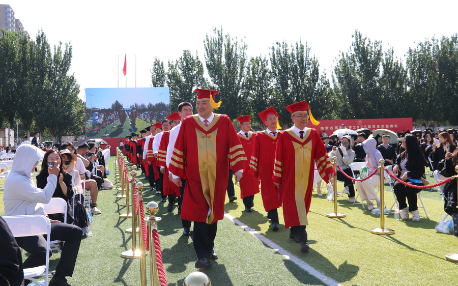 上午八时三十分,毕业典礼在全体人员高唱国歌声中拉开帷幕。裴志利宣读本专科学生毕业、辅修结业及授予学位决定;红梅宣读博士、硕士研究生毕业及授予学位决定;王百涛宣读《关于表彰2025届毕业班模范班集体、模范班主任的决定》《关于表彰2025届优秀毕业生的决定》。校领导为优秀班集体、优秀毕业生代表颁奖。