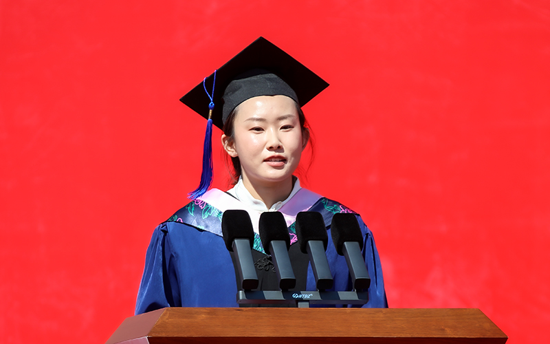 经济学院2021级经济与金融专业潘明同学代表全体本专科毕业生发言;文学与新闻传播学院2022级文化与传媒专业硕士研究生赵石霞同学代表全体研究生毕业生发言;蒙古国的2020级中药学专业来华留学生琪琪格达日同学代表全体留学毕业生发言;教师发展中心主任吴月玲教授代表教师发言;长期关心支持学校建设发展和学子成长成才的我校2002届农学专业毕业生、沈阳农业大学博士生导师,辽宁省产业技术研究院林下生物资源开发与利用研究所所长,沈阳林下经济重点实验室主任郭志富教授作为校友代表发言,他们用热情洋溢的讲话,为全体毕业生们送上了真诚的祝福。