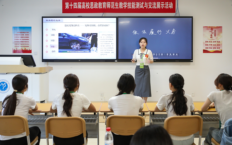 在教学技能测试中,选手们通过说课、讲课、答辩等环节进行同步测试。经过激烈紧张地角逐,我校获得本科生、研究生教学技能测试一等奖6项,二等奖7项,三等奖5项的好成绩。活动期间,还举办了多场专题报告和教学设计研讨,思政教育领域知名专家进行了相关教学设计内容的主旨报告。