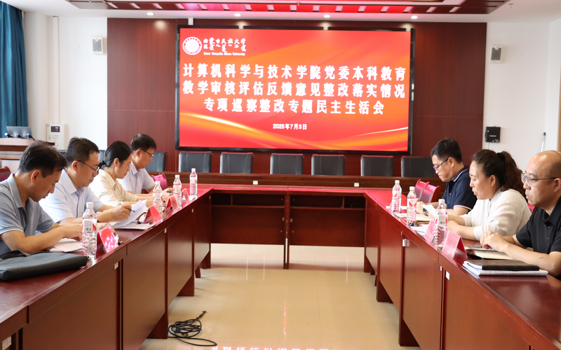 7月3日,计算机科学与技术学院党委在西拉木伦校区知行楼A703会议室召开本科教育教学审核评估反馈意见整改落实情况专项巡察整改专题民主生活会。校党委副书记、校长孟祥宏到会指导。学院领导班子、党支部书记、科级干部、系主任、教研室主任、实验室主任参加会议。学院党委书记斯琴高娃主持会议。