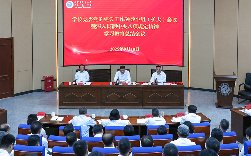 9月10日,学校党委召开党的建设工作领导小组(扩大)会议暨深入贯彻中央八项规定精神学习教育总结会议。校党委书记赵东海主持会议并讲话。自治区党委学习教育第一督导组组长、自治区人大社会建设委员会主任委员史万钧出席会议并讲话。