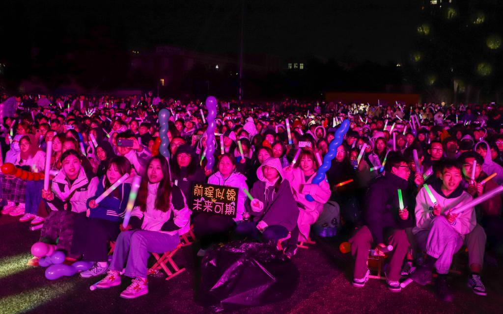 为庆祝中华人民共和国成立76周年、中国人民抗日战争暨世界反法西斯战争胜利80周年,深化民族团结进步教育,10月14日晚,学校在霍林河校区操场举行2025年“稚子花开”迎新晚会。校党委副书记王烨辉,校党委委员、副校长王百涛,校长助理王永利,学校相关职能部门领导、各学院党委书记、副书记、团总支书记及2025级全体新生共同观看了这场青春盛宴。