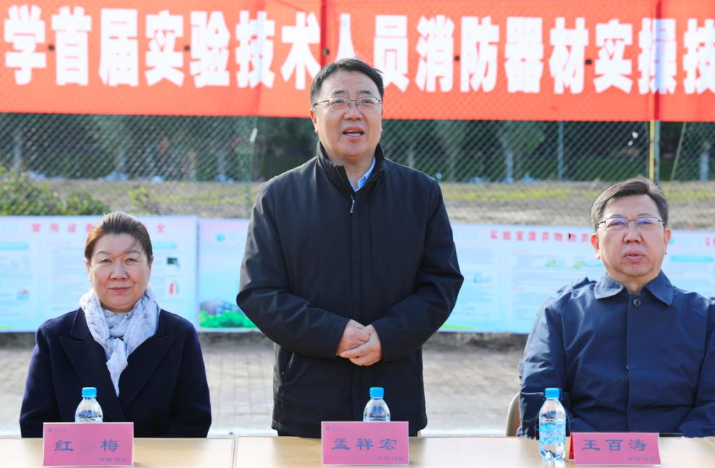 为全面贯彻落实习近平总书记关于安全生产的重要论述和重要指示批示精神,全面加强学校各级各类实验技术人员消防安全应急管理和处置能力,10月16日,学校举办内蒙古民族大学首届实验技术人员消防器材实操技能比赛。校党委副书记、校长孟祥宏,校党委委员、副校长王百涛,副校长红梅,各学院领导、实验室主任参加开幕式。孟祥宏宣布比赛开始。