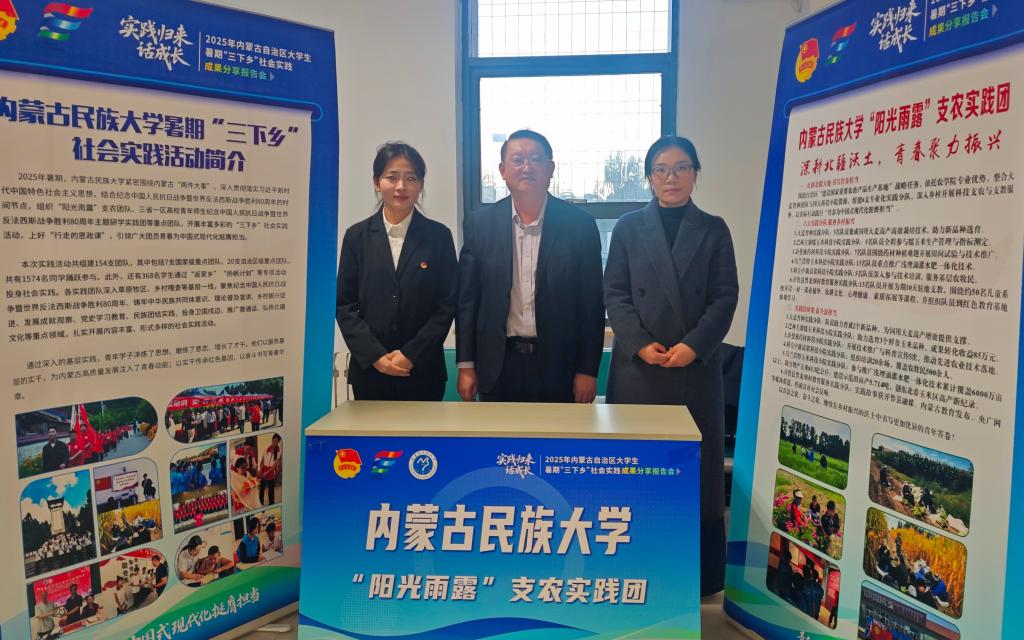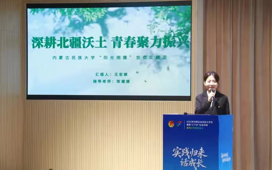 10月17日,由内蒙古自治区团委和内蒙古自治区学联主办的“实践归来话成长”2025年内蒙古自治区大学生暑期“三下乡”社会实践成果分享报告会在内蒙古财经大学举行。自治区团委副书记匡晓蕾出席并作总结讲话。我校“阳光雨露”支农实践团作为学校优秀实践团队代表,与来自全区其他高校的9支团队同台分享实践经验。