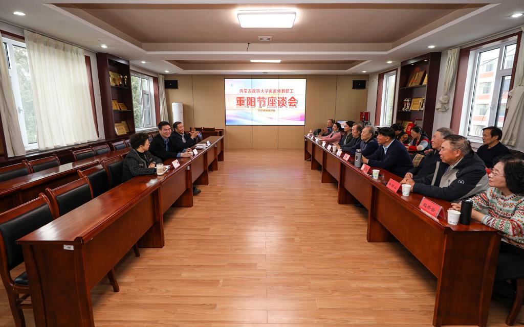 10月29日下午,学校召开离退休教职工重阳节座谈会。校党委副书记王烨辉与离退休教职工代表欢聚一堂,共话发展。离退休工作处处长孟和达来主持会议。
