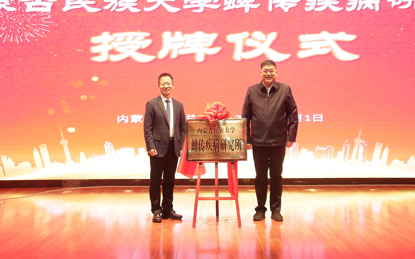 会上,赵东海与赵志军共同为内蒙古民族大学蜱传疾病研究所揭牌。