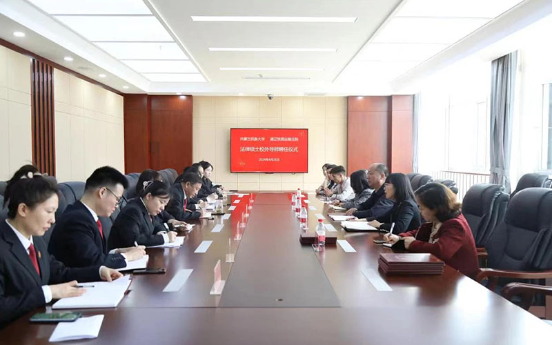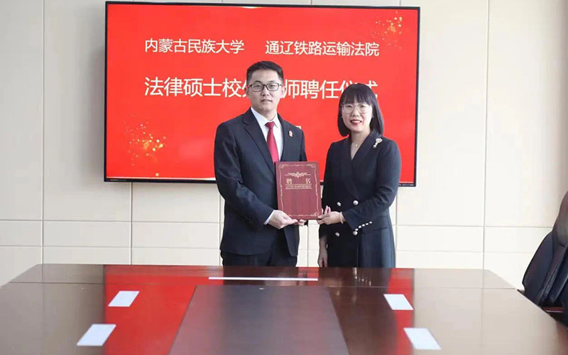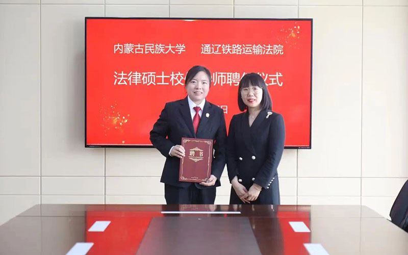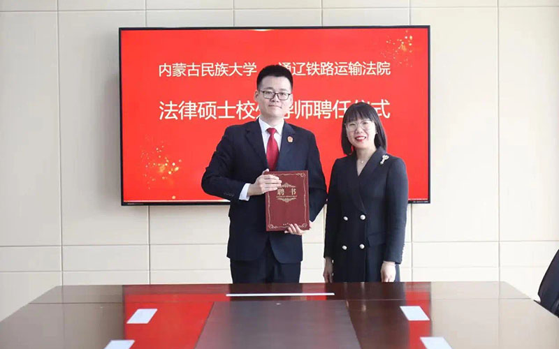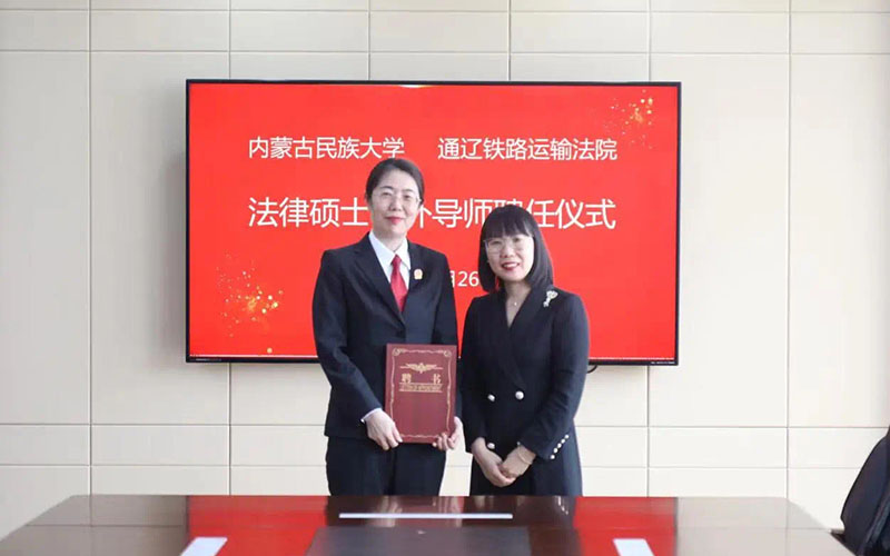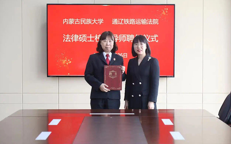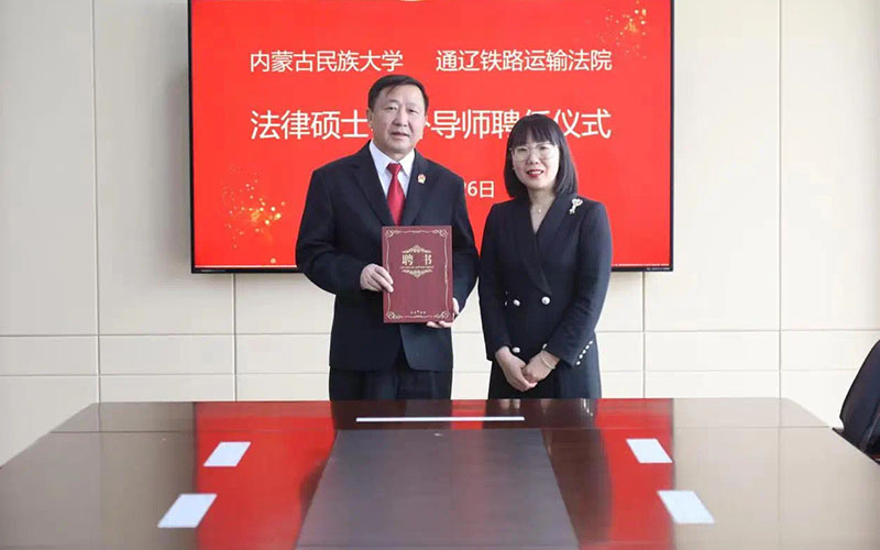 4月26日,我校与通辽铁路运输法院共同举办法律硕士校外导师聘任仪式,仪式在通辽铁路运输法院举行。通辽铁路运输法院党组书记、院长伊日乐图,内蒙古民族大学法学院党委书记清河、院长唐孝辉、党委副书记萨茹拉、副院长付淑娥、教师代表祁光明及通辽铁路运输法院部分干警参加仪式。