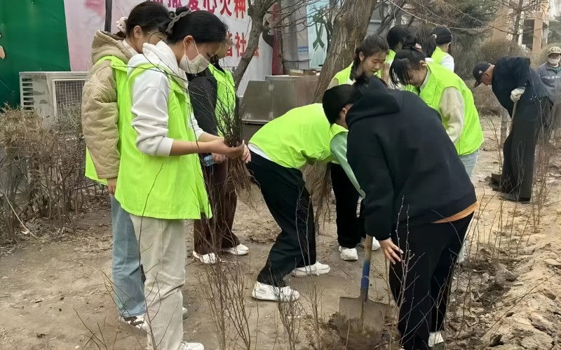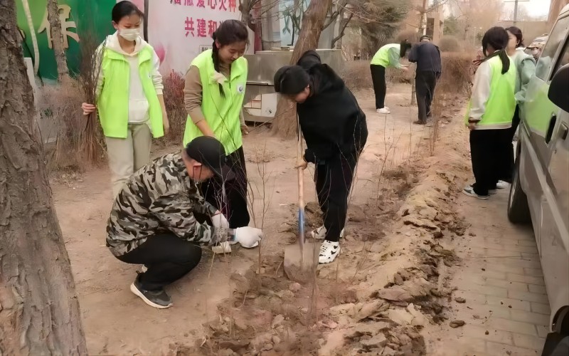 活动伊始,志愿者们同社区工作人员一同前往河畔花园B区进行植树工作,秉持着“不怕苦、不怕脏、不怕累”的劳动精神,埋头苦干,团结协作为社区绿化贡献力量。随后,志愿者们配合社区工作人员向社区居民发放有关通辽市移风易俗的宣传单,向中老年人宣传“倡导移风易俗、抵制陈旧陋习”等宣传标语,树立文明新风。