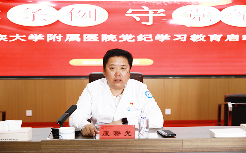 康曙光对与会人员提出三点工作要求。一是要加强组织领导,提高政治站位。要以高度的政治责任感和使命感,把开展党纪学习教育作为重要的政治任务,找准开展学习教育的着力点,准确把握目标要求和各项工作的安排,从严从实做好各项重点任务的组织实施,教育引导党员干部学纪、知纪、明纪、守纪,做到忠诚、干净、担当,推动党纪学习教育深入开展。二是要突出重点,严抓理论学习。要坚持在原原本本学上下功夫,逐条逐句地学习条例,切实增强政治判断力、政治领悟力、政治执行力,将党纪学习教育与医院的中心工作相结合,以更加坚定的行动和实实在在的成效践行“两个维护”。三是要坚持以学促改,抓好整改工作。全院各级党组织要正确理解开展党纪学习教育的重要意义,认真查找思想上的不足和工作中存在的问题,自觉用党规党纪校正思想。纪律是戒尺,也是底线,在学习和工作中必须一丝不苟执行和遵守纪律。基层党组织要管好身边人,做好身边事儿,明明白白、清清爽爽地去干工作。通过开展学习党纪学习教育,让党员干部在思想上受到深刻的洗礼,在行动上得到有力的锤炼,真正做到知敬畏、存戒惧、守底线,为加快建设特色鲜明、人民满意、区域优势明显的高水平大学附属医院提供坚强有力保障。