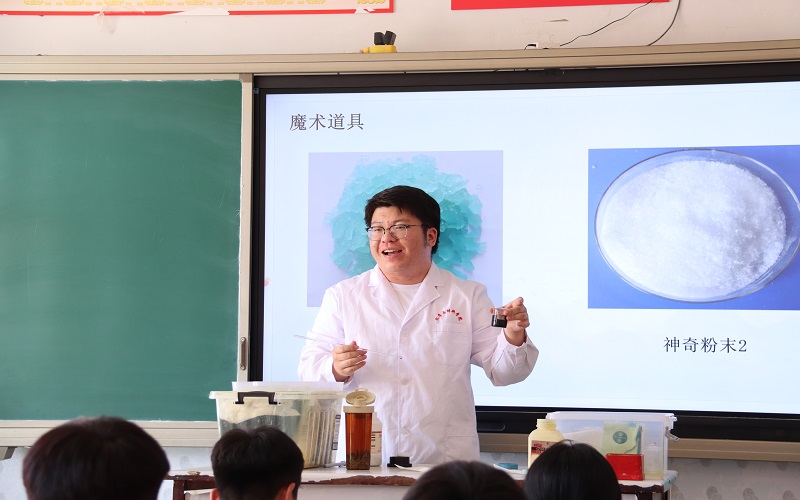 实验环节中,学生们非常配合,他们聚精会神地听讲,积极参与互动,踊跃发言。每当宣讲员提出问题,学生们都能迅速思考并给出答案,展现出强烈的求知欲和思维能力。良好的互动氛围使课堂变得更加生动有趣,激发了同学们学习化学的兴趣,提升他们的学习成效和自信心。