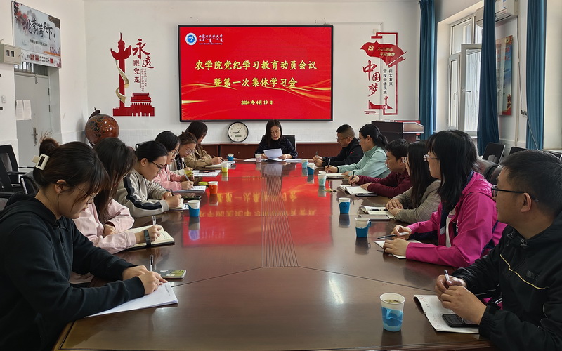 为深入落实党中央、自治区党委和学校党委关于党纪学习教育的部署,研究推进学院开展党纪学习教育有关工作,4月19日,农学院组织召开党纪学习教育动员会议暨第一次集体学习会议。学院党委委员、中心组成员、各支部书记、支委、组织员及师生党员代表参加会议。学院党委书记张晓丽主持会议。