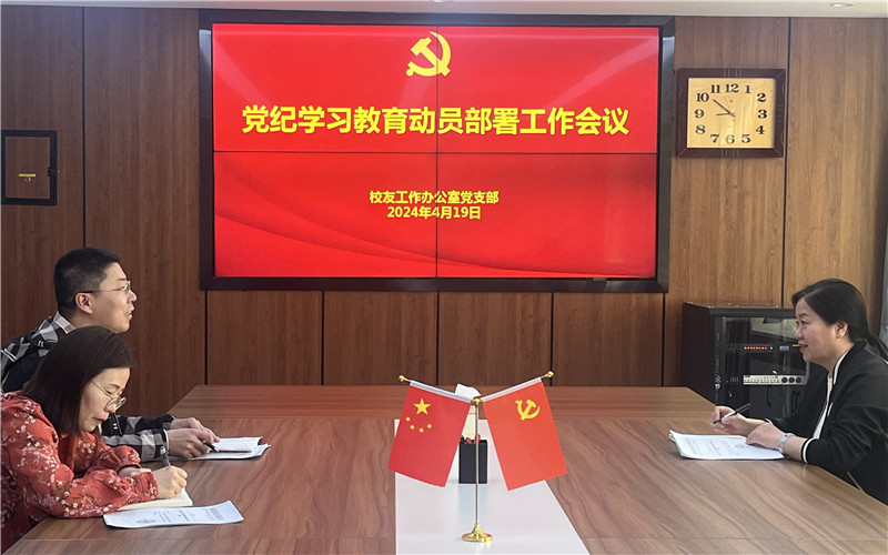 4月19日,校友工作办公室党支部在霍林河校区500会议室召开党纪学习教育动员部署工作会议,会议由党支部书记白金英主持,支部全体党员参加会议。