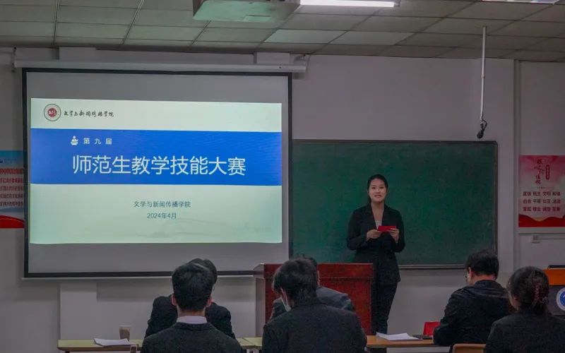 为提升学院师范生的教育教学能力,展示未来教师风采,文学与新闻传播学院于4月9日晚在思源楼314室举办第九届师范生教学技能大赛。文学与新闻传播学院党委副书记包宝柱参加并全程指导,语文教育教研室卢金明副教授、陈元峰副教授和周坤副教授担任评委。