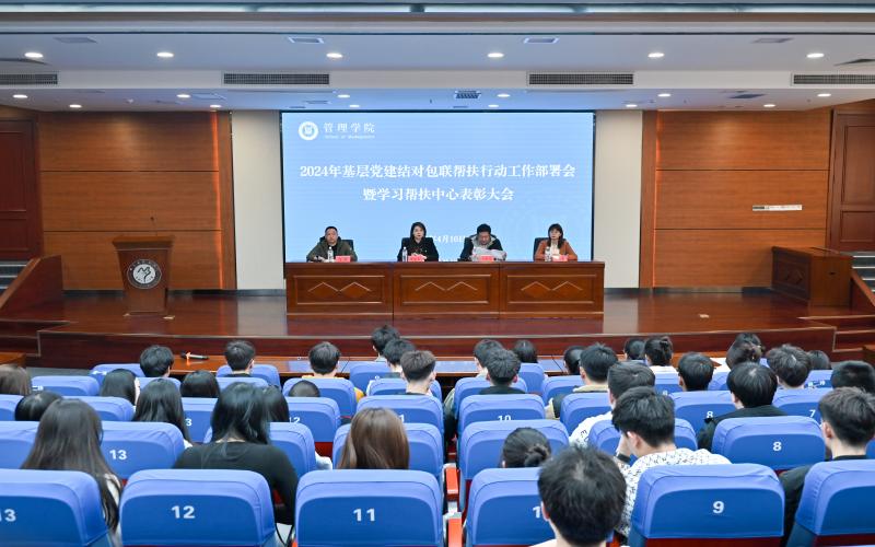 4月10日下午,管理学院2024年基层党建结对包联帮扶行动工作部署会暨学业帮扶中心表彰大会在图书馆小报告厅召开。学院党委书记屠丽妍、副书记刘思源以及辅导员、党员学生干部和帮扶对象出席会议,会议由学工办主任海柱主持。