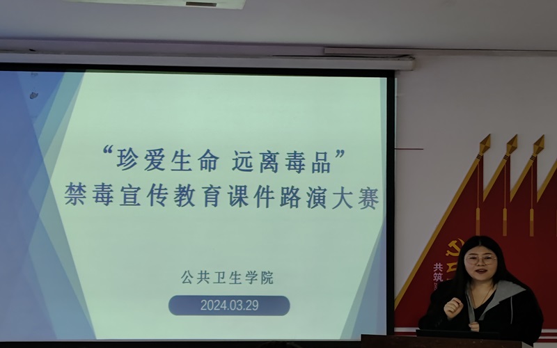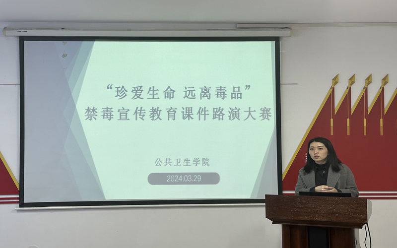 为进一步宣传禁毒知识,提高学生对毒品危害认识和防范意识。3月29日,公共卫生学院在致远楼602会议室举办禁毒宣传教育课件路演大赛。副院长白雪、学工办副主任齐志欣、团总支副书记乌兰图雅、毒理学教研室包书茵副教授和马茜茜老师担任比赛评委。共13名同学参加了本次路演大赛。