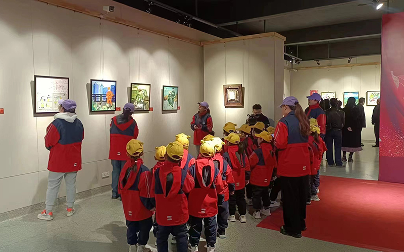 本次联展共展出各学龄段学子创作的作品60余件,是学院深化校企合作,充分发挥美育基地资源优势、服务地方美育发展的积极举措。作品展现出中华优秀传统文化的独特魅力,抒发了幼儿园、小学、初中、高中和大学不同学龄段学生的浓厚爱党爱国情怀,描绘了社会主义新时代主旋律,展示验收了不同学龄学子学悟传统文化及接受美育教育的成果。