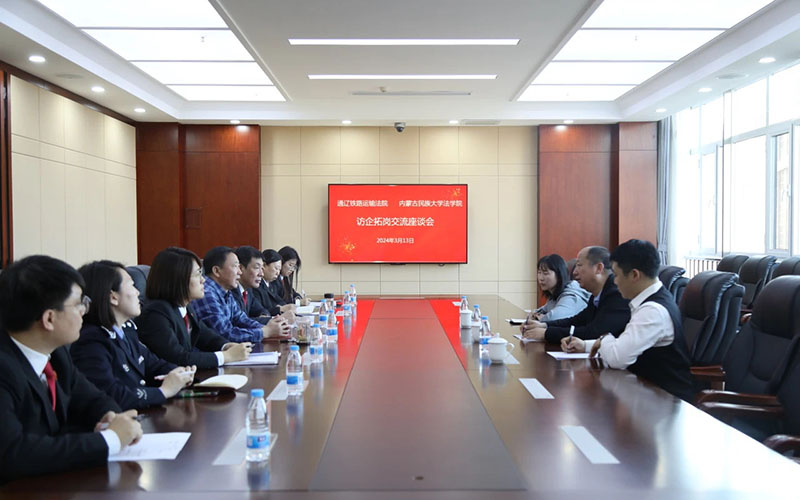 为进一步深化院校合作,加强产教融合、供需对接,全力促进就业工作,3月12日,法学院党委书记清河一行赴通辽铁路运输法院进行座谈交流。通辽铁路运输法院党组书记、院长伊日乐图,审判委员会专职委员韦长缨及各支部委员,内蒙古民族大学法学院团总支书记黄格尔、学工办主任王振宇及部分学生参加本次活动。