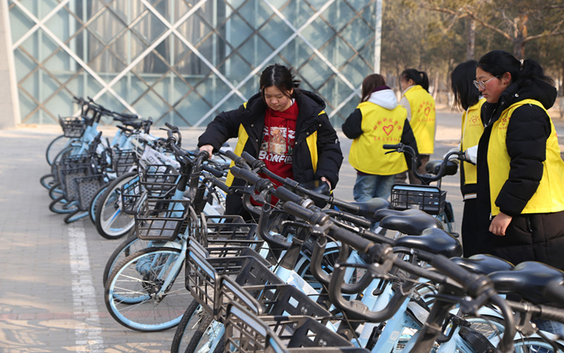 活动中,志愿者们积极行动,相互协作,将随意停放的共享单车一一移至规定位置,规范整理并有序停放。经过志愿者们的共同努力,杂乱停放的共享单车变得有序起来,营造了和谐、整洁、文明的校园环境。