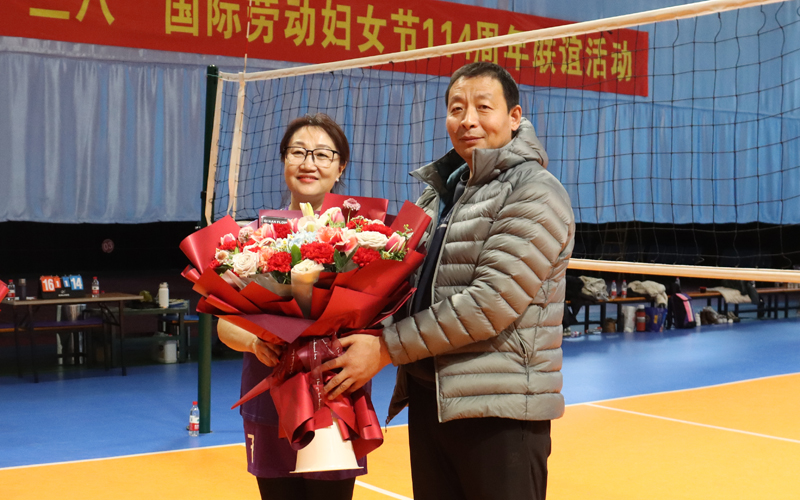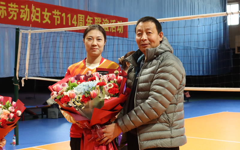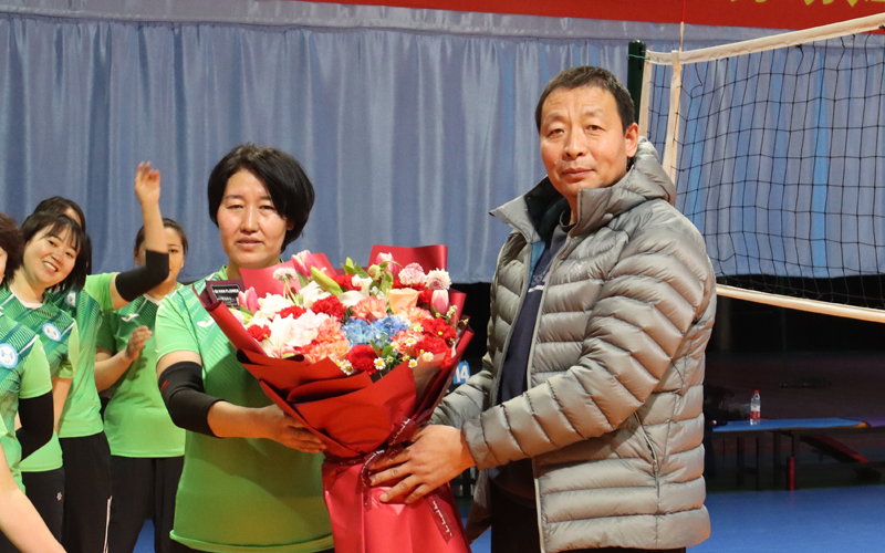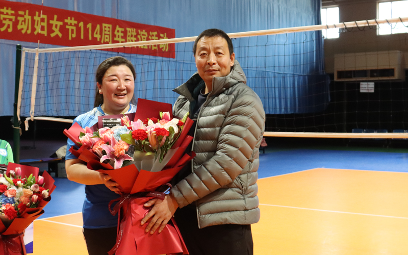 赛场上,各参赛队尊重对手、密切配合、团结一致、努力拼搏,或大力扣杀,或精妙二传,或前排拦网,或后排吊球,你来我往,互有攻守,不断掀起比赛高潮。赛场外,欢笑声、加油声、喝彩声不绝于耳,整个比赛过程精彩纷呈,欢乐喜庆,气氛祥和。大家秉持“友谊第一、比赛第二”的体育精神,赛出了风格、赛出了水平。赛后,刘巴图为各队队员送上鲜花以表达节日的祝福。
