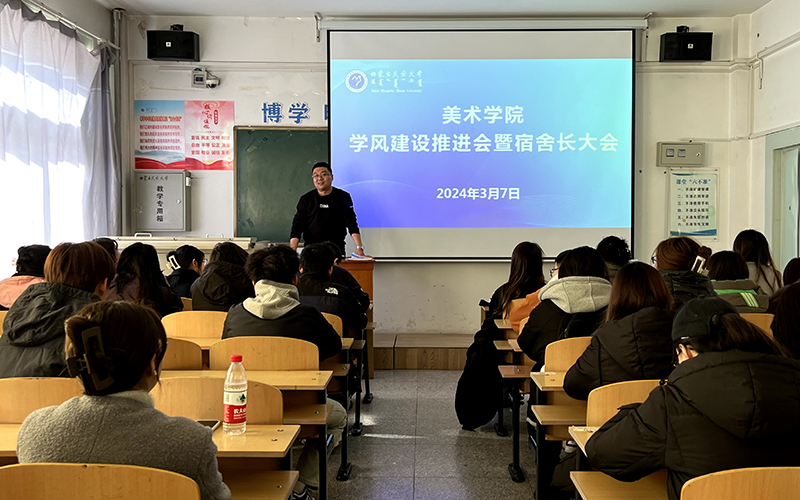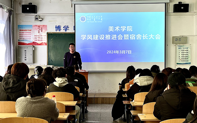 3月7日,美术学院在西拉木伦校区逸夫楼328教室组织召开学风建设推进会暨宿舍长大会。学院党委副书记杨文军,辅导员王安琪、母冰玉以及全体宿舍长参会。会议由学工办主任吴潮洛蒙主持。