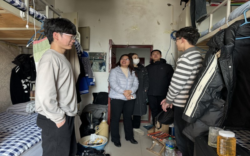 走访过程中,学院领导老师与同学们亲切交流,询问了解学生返校后的生活情况、生活状态和思想状况,了解学生的诉求,鼓励学生在新学期明确学习方向、合理规划时间、积极参加活动、实现全面发展。同时,学院对宿舍安全隐患进行了排查,提醒学生重视宿舍卫生,注意用电安全、消防安全和人身财产安全等,增强安全防范意识。