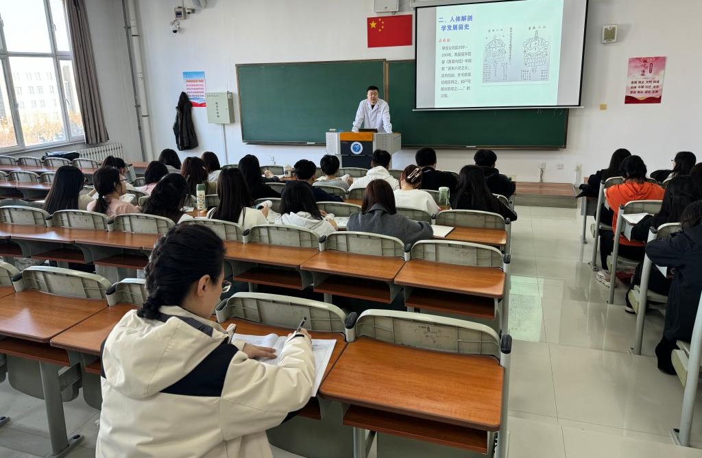 学院领导与同学们共听刘伟民老师《影像诊断学》、李迪老师《系统解剖学》和邓烨老师《临床检验仪器与技术》等课程。各位老师提前到岗,精神饱满,课前准备充分。同学们按时上课,认真听讲,积极与老师互动,课堂气氛活跃。