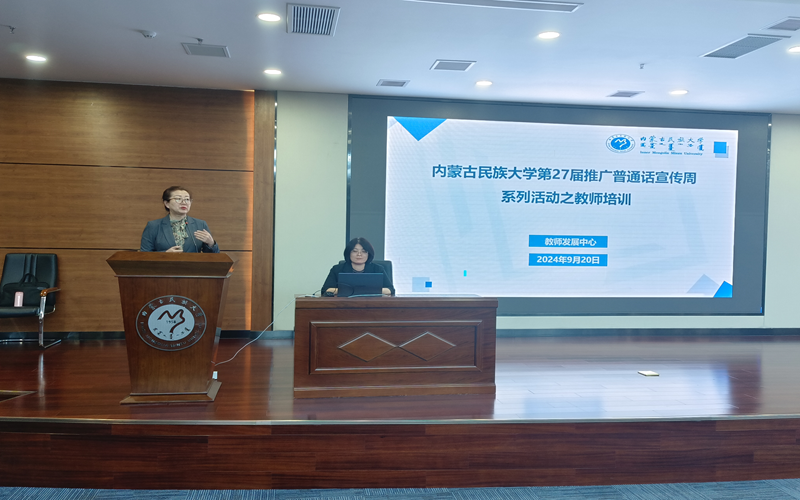 为深入学习贯彻党的二十大和二十届三中全会精神,深入贯彻落实习近平总书记关于教育的重要论述和关于语言文字的重要指示批示精神,服务铸牢中华民族共同体意识,高质量推广普及国家通用语言文字,9月20日下午,教师发展中心在内蒙古民族大学图书馆小报告厅组织校内各专业骨干教师举办了“国家通用语言文字和高校教师职业技能”专题讲座。教师发展中心主任吴月玲主持讲座。
