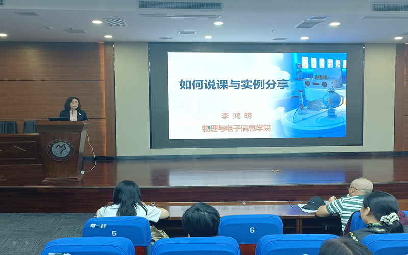 在教学技能培训环节,我校教学名师、第四届全国高校教师教学创新大赛三等奖获得者、物理与电子信息学院李鸿明教授作了题为《如何说课与实例分享》的专题讲座。李鸿明从什么是说课、说课说什么、操作要点、基本要求四个方面对教师说课技能进行了深刻剖析和阐释,并向现场参训教师展示了《课程思政和教学创新》说课实例,同老师们分享自己参赛说课经验,现场气氛热烈,老师们受益匪浅。