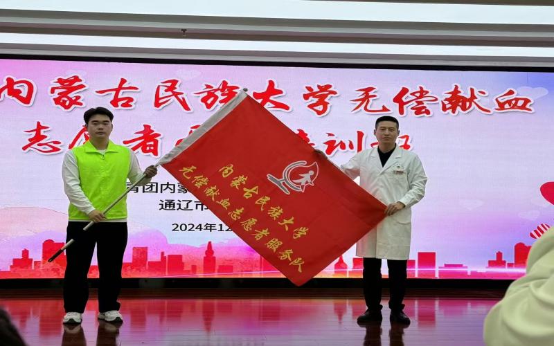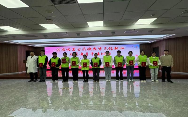通辽市中心血站书记、站长石海鹏和校团委组织部部长敖敏共同为30名志愿者颁发了“无偿献血宣讲员”聘书。