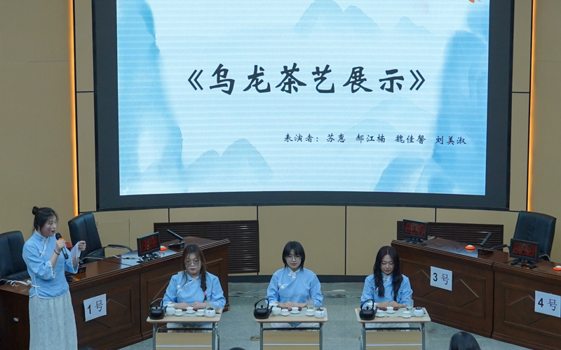 11月30日晚,决赛于霍林河校区明理楼报告厅进行。学院党委书记王金双教授、院长郝青云教授出席活动,学院教师冯淑然、王若明担任点评嘉宾。2022级汉语言文学二班曾柯又担任主持人,来自学校各专业的90余名同学观赛。开场由何笑一、吴雅欣等六位同学带来情景诗朗诵《诗海悠悠诵华章》,比赛正式启幕。16位决赛选手通过抽签随机分为四组,每组四人,历经必答“九宫格”“十二宫格”与“抢答题”的多轮比拼,按总分排定前四强。最后,四强选手以“飞花令”“抢答题”一决高下,诞生总冠军。比赛期间,观众热情高涨,沉浸其中,掌声不断。冯淑然的专业点评、同学的书法展示,以及刘美淑等同学的乌龙茶艺表演,为赛事添彩赋能,营造了浓厚的文化氛围。