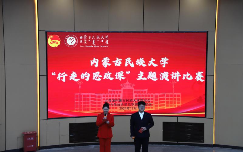 12月2日,校团委在霍林河校区明理楼举行《思想道德与法治》课程“行走的思政课”主题演讲比赛决赛。马克思主义学院党委副书记山丹,马克思主义基本原理概论教研室主任乔德中,习近平新时代中国特色社会主义思想概论教研室主任王晓慧,学生处思想教育科科长刘海波,校团委组织部部长敖敏出席活动。各学院学生代表共180余名学生参加活动。