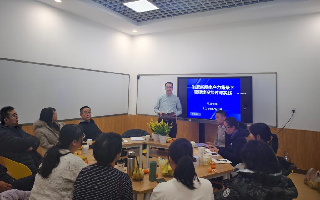 12月6日,草业学院在图书馆二楼2号研讨室举办以“发展新质生产力背景下课程建设探讨与实践”为主题的教学沙龙活动。草业学院各系主任、副主任,各类一流课程、精品课程、优秀课程负责人及其团队骨干教师,近三年引进年轻博士参加活动。教学沙龙由草业学院副院长邰继承主持。