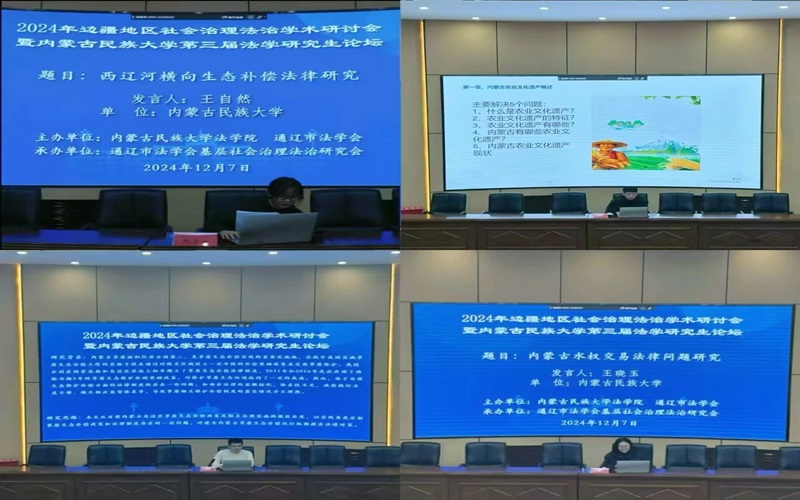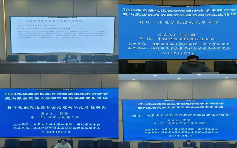 论坛共收录参会论文60篇。在分组研讨阶段,与会人员围绕分别就“内蒙古生态文明法治”“北疆文化法治”“边疆地区社会治理法治理论与实践”三个专题进行了分组发言和专家评议。