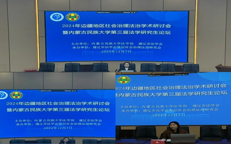 12月7日上午,由内蒙古民族大学法学院和通辽市法学会主办,通辽市法学会基层社会治理法治研究会承办的2024年边疆地区社会治理法治学术研讨会暨内蒙古民族大学第三届法学研究生论坛在内蒙古民族大学明理楼报告厅成功举办。全国各地公检法机关、通辽市法学会相关工作人员以及内蒙古民族大学法学院领导班子成员、教师、研究生、本科生共计近200人参加。论坛开幕式由法学院院长唐孝辉主持。