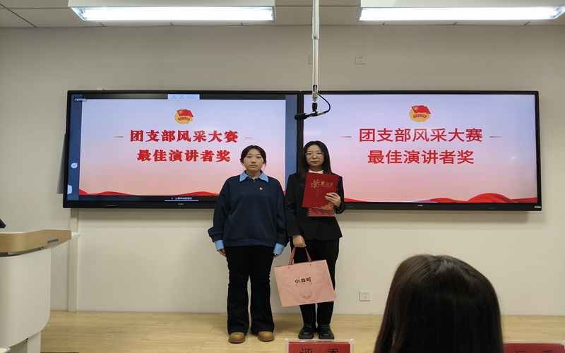 团总支副书记韩欣桐为获得最佳演讲者颁奖