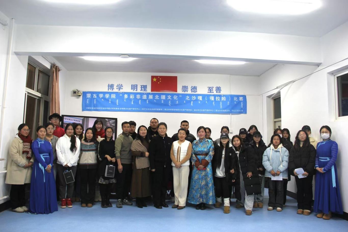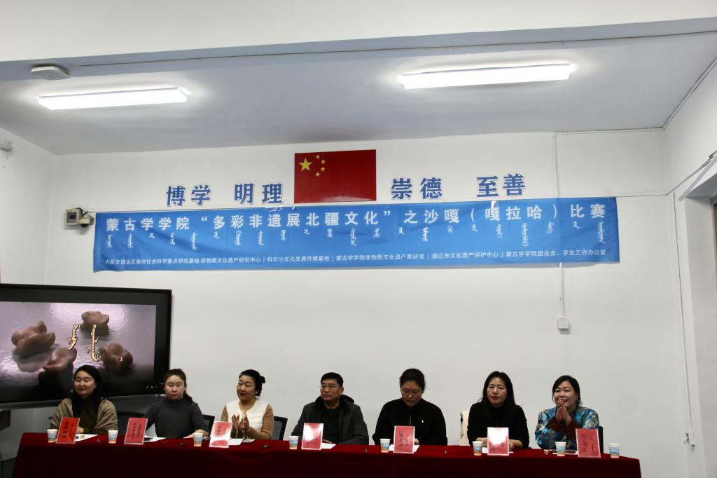 为弘扬中华优秀传统文化,铸牢中华民族共同体意识,12月9日晚,蒙古学学院在博学楼403教室举办“多彩非遗展北疆文化”之沙嘎(嘎拉哈)比赛。本次比赛由内蒙古自治区高校社会科学重点研究基地——非物质文化遗产研究中心、科尔沁文化发展传播基地、蒙古学学院非物质文化遗产教研室、通辽市文化遗产保护中心、蒙古学学院团总支、学生工作办公室共同主办。学院党委书记孙永革、党委副书记温都斯、副院长乌吉斯古冷出席活动。30余名不同民族的选手参加比赛。