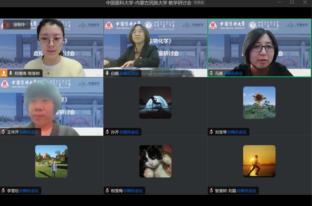 12月11日,我校基础医学院生物化学与分子生物学教研室与中国医科大学生命科学学院生物化学与分子生物学教研室以“深入交流,共促发展”为主题,联合举办《生物化学》虚拟教研室建设线上教学研讨会。研讨会聚焦虚拟教研室建设、课程内容调整、《生物化学》课程设计及双方同步课堂授课经验交流。中国医科大学教务处副处长王华芹、我校教务处副处长王晓晖参加活动。