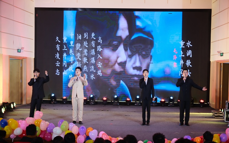 晚会在动感的《dance shoot》舞蹈表演中拉开帷幕,热情洋溢的舞姿瞬间点燃了现场的气氛。悠扬的马头琴合奏《万马奔腾》将观众带入了一个辽阔的草原世界,悠扬的琴声仿佛让人置身于万马奔腾的壮丽场景之中;歌曲《耗尽》以其深情的旋律和动人的歌词打动了在场的每一位观众;马头琴独奏《苏和的白马》,10岁的阿云嘎以精湛的技艺赢得了在场观众的阵阵掌声;情景剧《复苏》则通过生动地表演和富有感染力的故事情节,展现了青春的力量和无限可能;古典舞和现代街舞融合的《舞蹈串烧》展现了工学院学子们的多才多艺和青春活力;Rap表演《山上》以其独特的节奏和犀利的歌词,展现了新时代青年的独特风采;朗诵《星火燎原》回顾了党的百年奋斗历史,振奋人心的词句激励着每一位在场师生;蒙古族传统表演呼麦《成吉思汗》以其独特的艺术形式和深厚的文化底蕴,赢得了现场观众的热烈反响;萨克斯独奏《走过咖啡屋》以其优美的旋律,为观众带来了一丝浪漫与温馨。工学院教师王利辉演唱的歌曲《银色的毡房》以其深情的表演和优美的旋律,将晚会推向了高潮。最后,学生组织表演的《奇迹再现》《GGBond》《开心超人》等节目,展现了工学院团学组织的活力与创意,为晚会画上了圆满的句号。